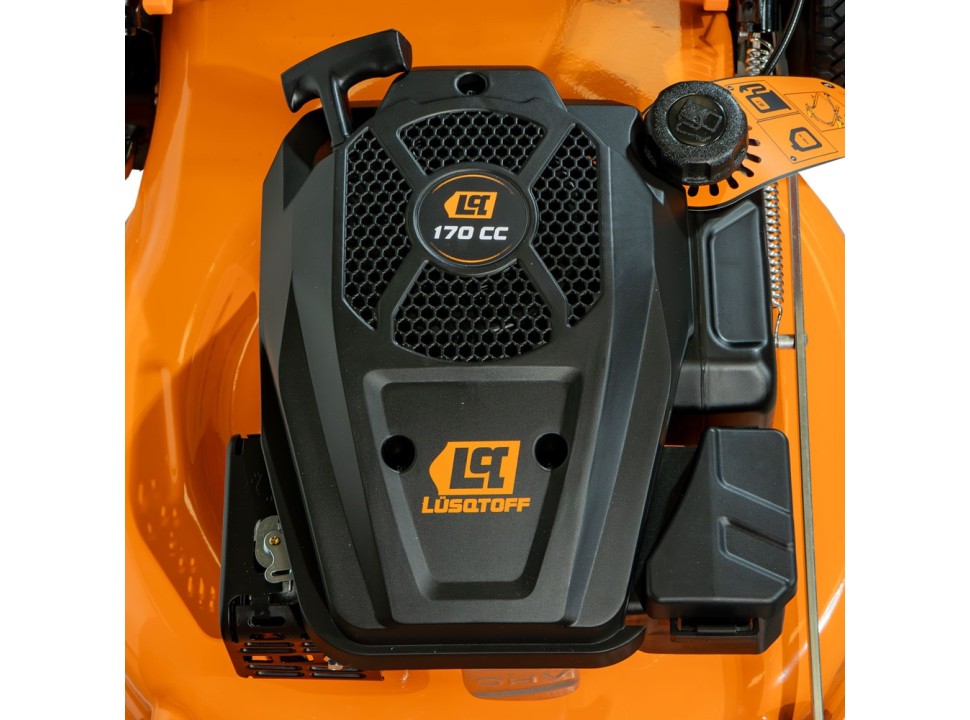 - 3 en 1: bolsa recolectora, salida trasera y trituradora